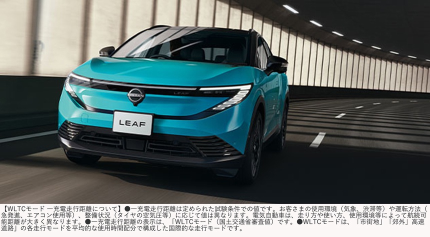 日産リーフの一充電走行距離[WLTCモード](国土交通省審査値)は日産EV最⻑の702km(B7 X)。